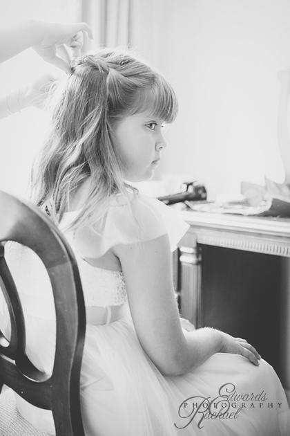 My day began with Alice, her sister and her hairdresser, Chloe, in a beautiful upstairs bedroom at Dean's Place. It was such a lovely atmosphere, so relaxed and yet with so much anticipation for the day ahead, and I quickly got on with shooting the preparation shots and some details of the dresses and flowers before the two little bridesmaids joined us. Meanwhile, Jamie had arrived and I popped down to meet him and his Best Man for a couple of shots before the gorgeous Bride and her Bridesmaids were ready to come down for the gorgeous outdoor ceremony.