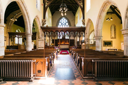 They were married at St John the Baptist Church, where the sun streamed through the stained glass during a really lovely service where even the kids were kept entertained by accompanying the hymms with maracas, tambourines and more - a great idea!