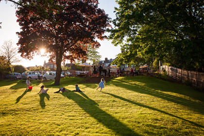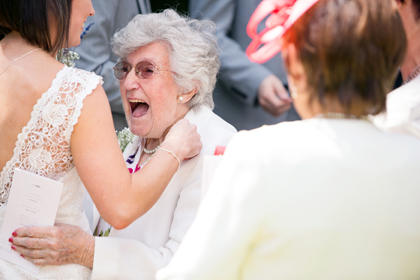 After a gorgeous meal back at the pub and some great speeches, everyone spilled outside again to soak up the rays, before a surprise performance by Emily's dad and brother started off the evenings music and dancing.