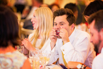 The music had been great all day, with a lovely string quartet playing in the Church and during the Drinks Reception, followed by a fantastic singer and band in the evening. Then, just before the First Dance, some incredible Indian Drummers surprised us all and got everyone on their feet dancing - I've never seen anything like it, absolutely brilliant!