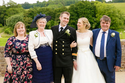 We then made our way through the gorgeous West Sussex countryside to Farbridge Barn. Wow, what a venue - so beautiful and in such a breathtaking setting - right up my street! A bright, rustic barn, set up so beautifully, and ready to accommodate their happy guests. The weather did take a turn for the worst so we quickly got some group shots out in the courtyard before heading back under cover for their drinks reception - and the rain didn't matter one bit, everyone had plenty of room and they were warm, dry and very happy under the beautiful barn.